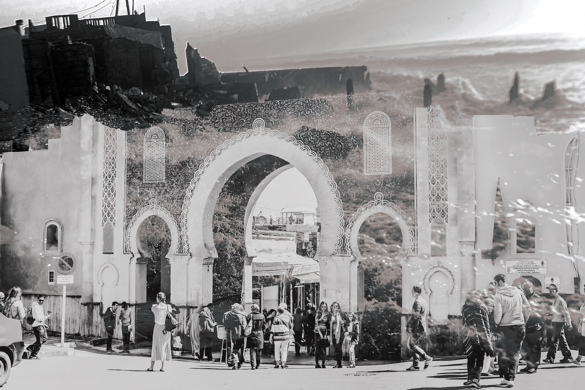 Le projet, intitulé Double Expo, repose sur un principe aussi simple qu’exigeant : chaque artiste a offert à l’autre cinq clichés bruts, tirés de son propre répertoire, sans retouche ni indication. Puis, dans un second temps, chacun s’est emparé des images reçues pour y superposer un fragment de son propre regard, une texture visuelle, un élément symbolique, une matière de lumière ou d’ombre. Ainsi naissent dix œuvres hybrides, dix paysages mentaux où la culture marocaine et l’identité sénégalaise se superposent dans une alchimie photographique unique.
